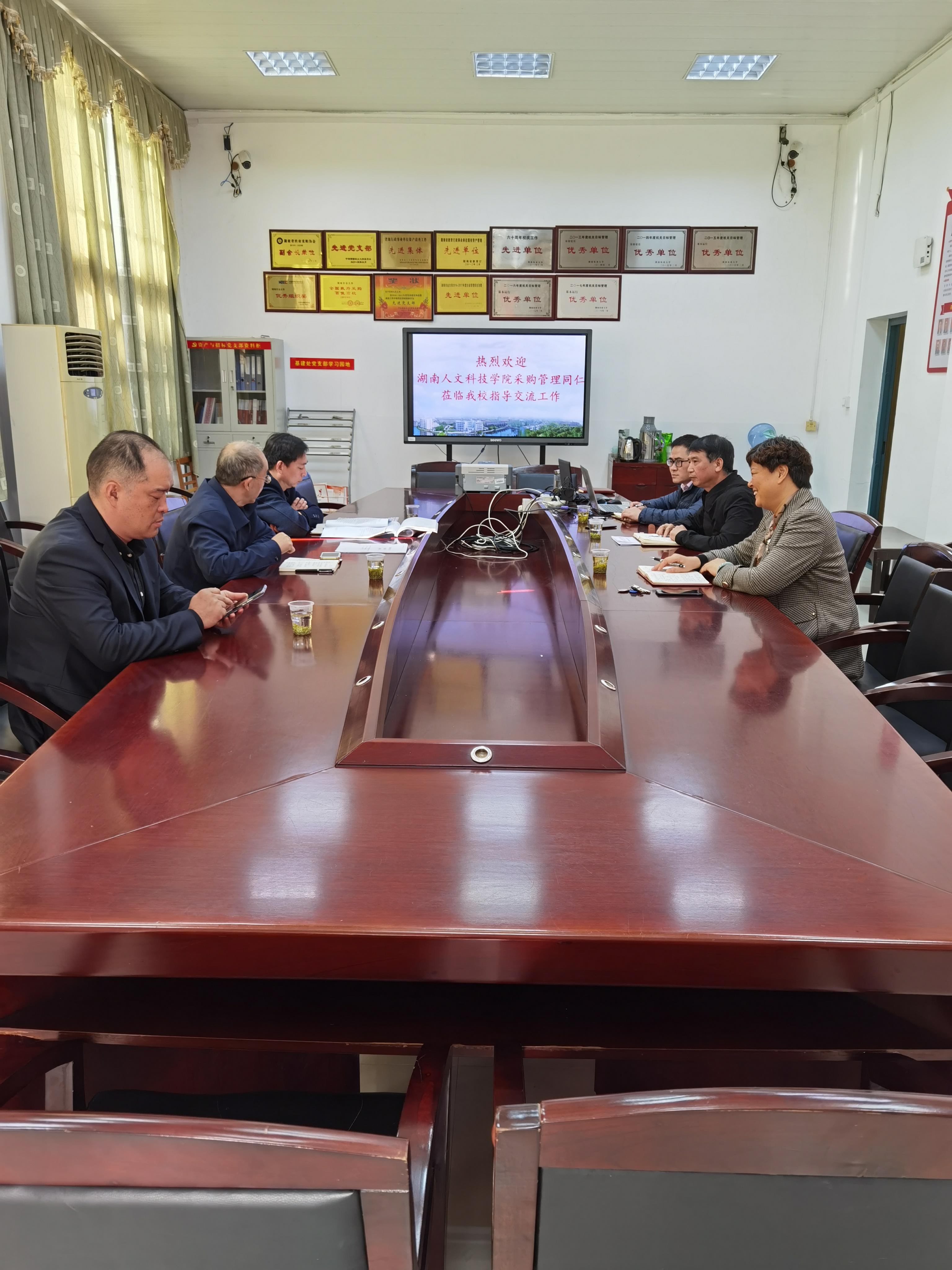 2021年11月9日上午,湖南人文科技学院国有资产管理处副处长鄢凤明一行三人前来bevictor伟德学习交流。学校bevictor伟德主任欧阳中万、尹华及相关人员与湖南人文科技学院同仁进行了座谈和交流,双方就招标采购内控制度建设、公务车辆租赁、电子卖场使用等工作进行了重点交流与探讨,分享了各自的采购工作经验.